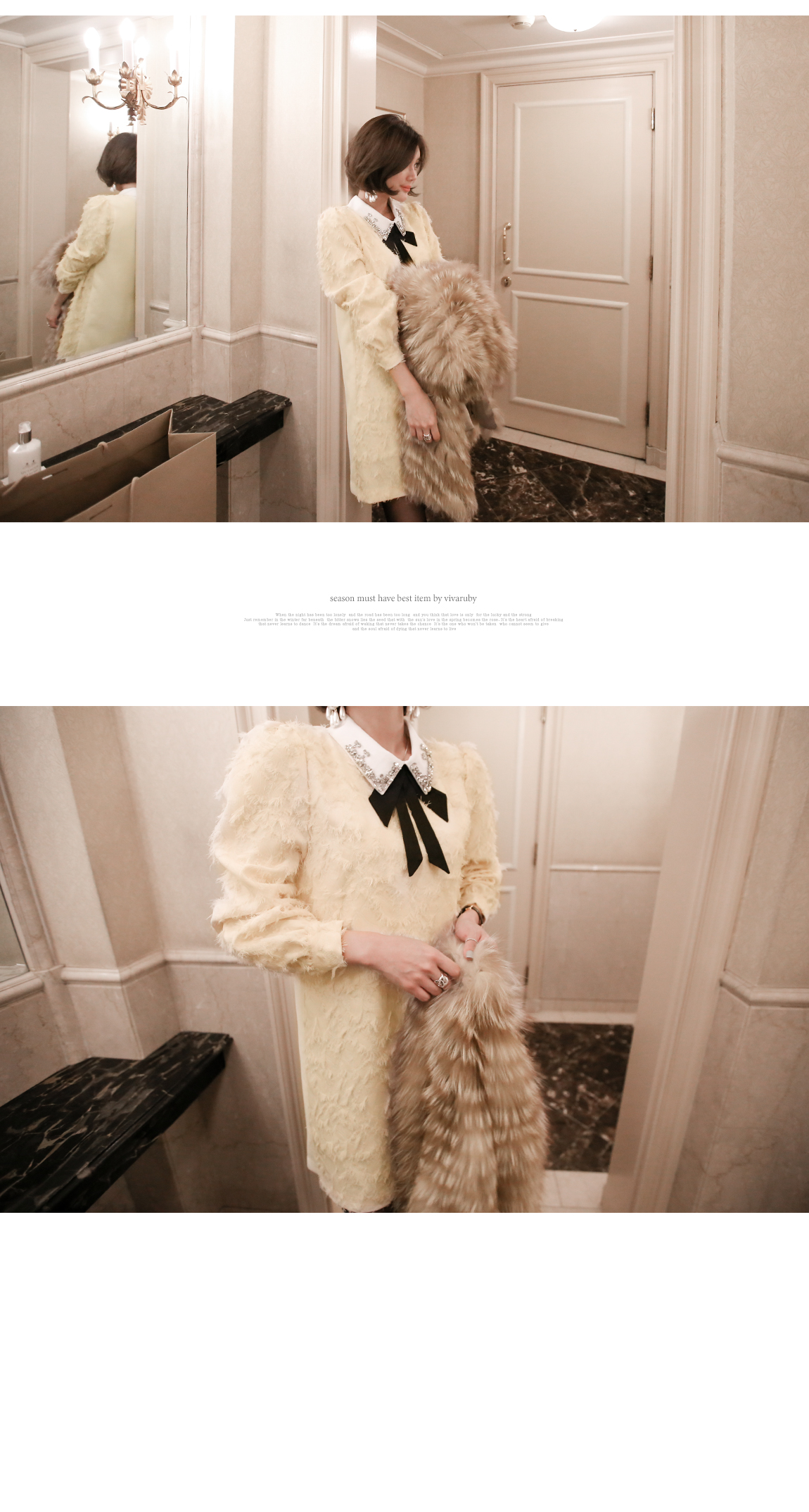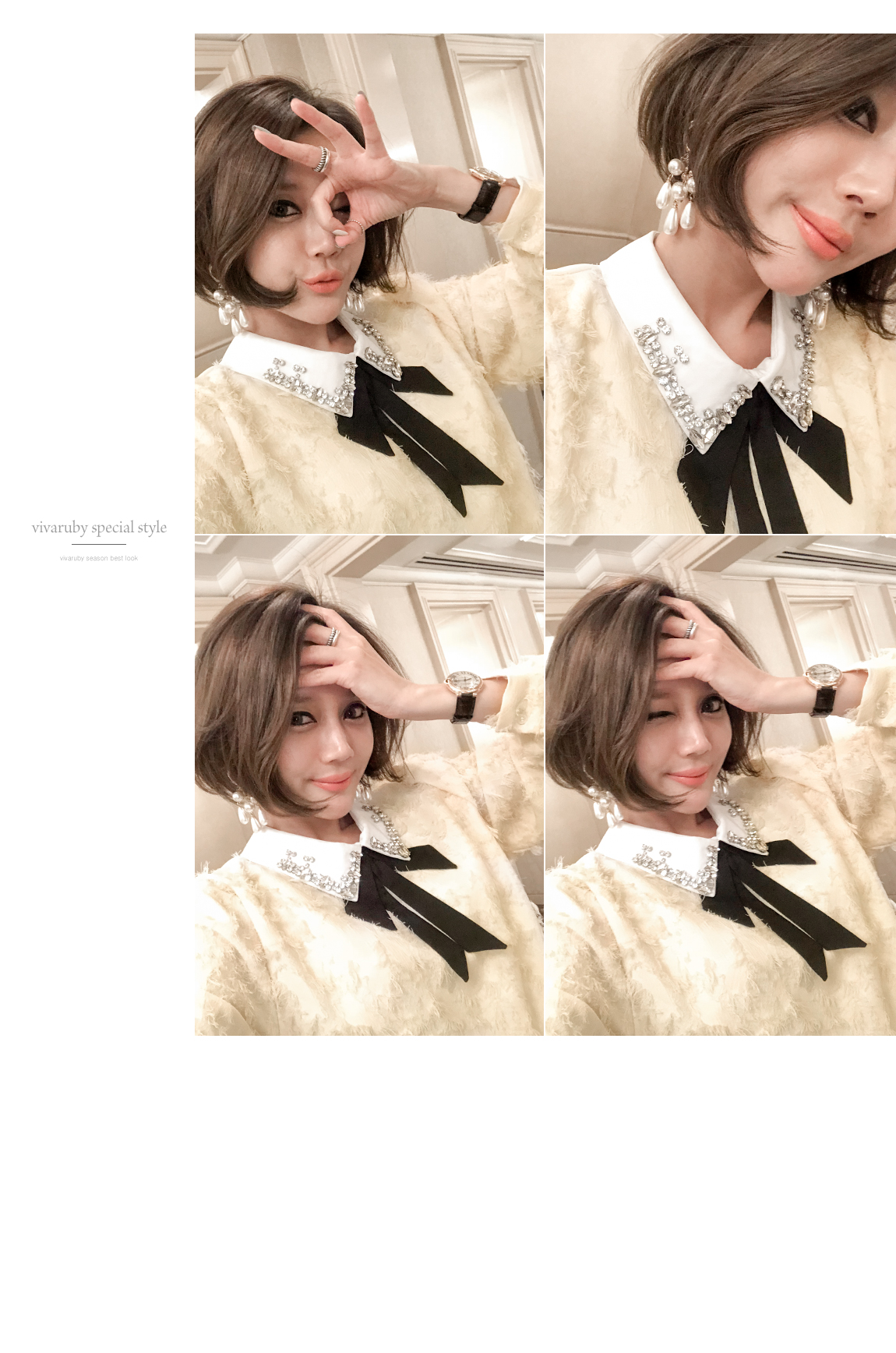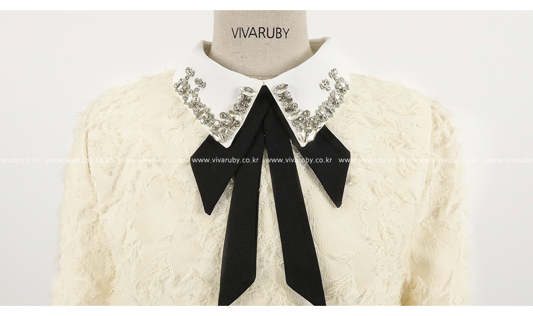 카라의 리본은 탈착이 가능해 다양한 연출을 도와줍니다