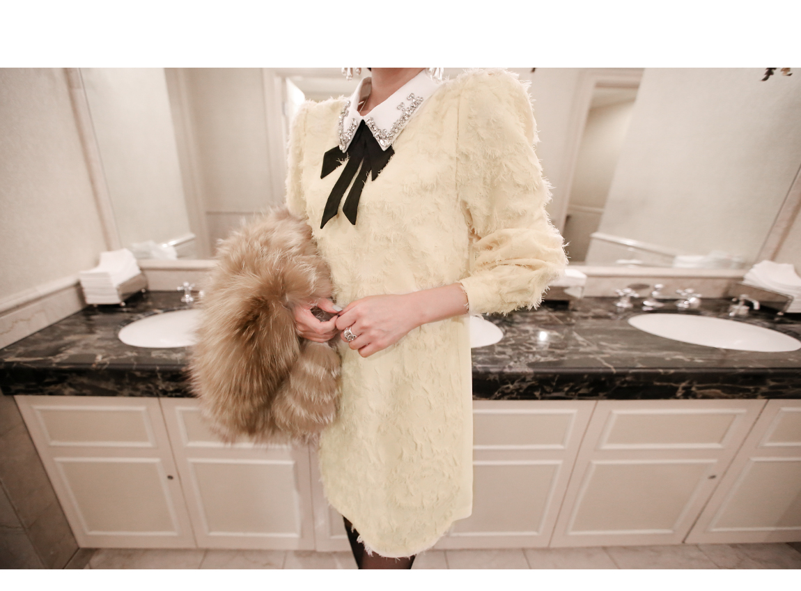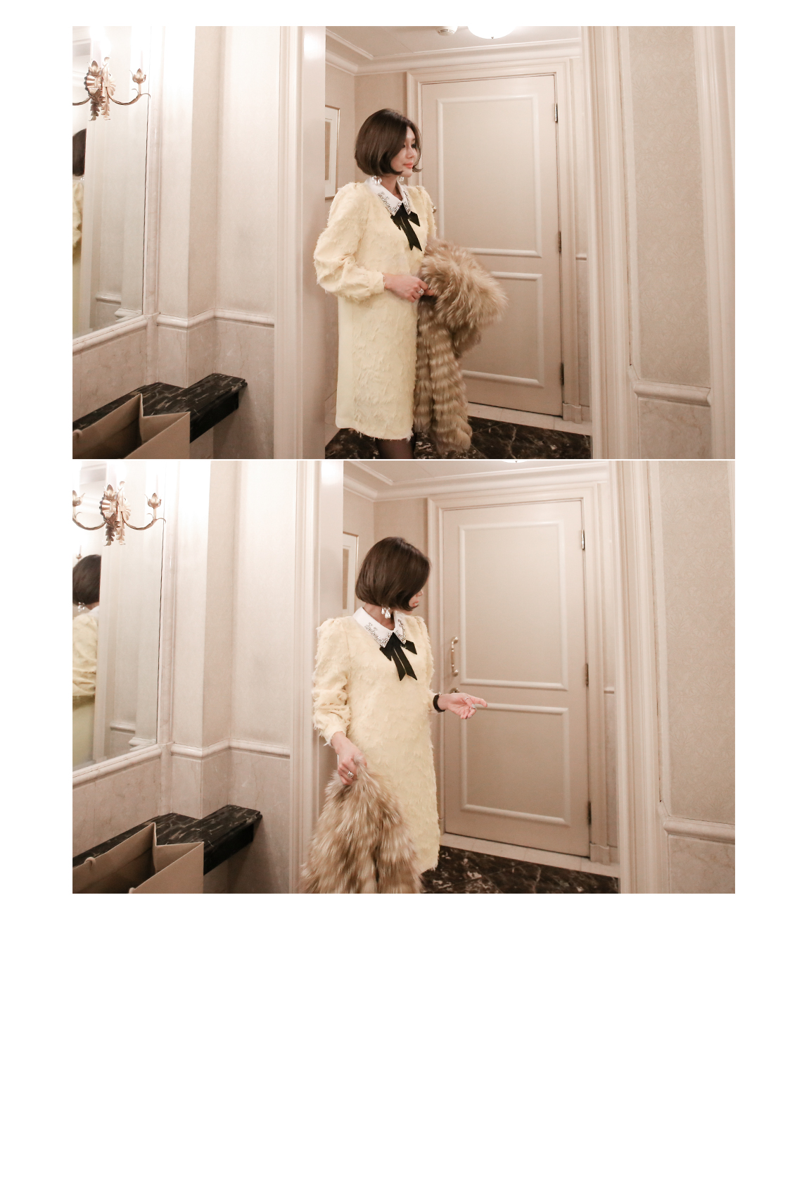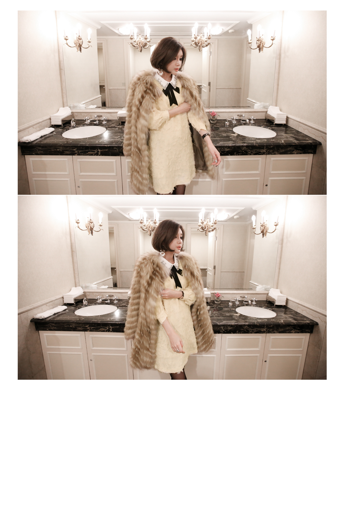 카라의 리본은 탈착이 가능해 다양한 연출을 도와줍니다