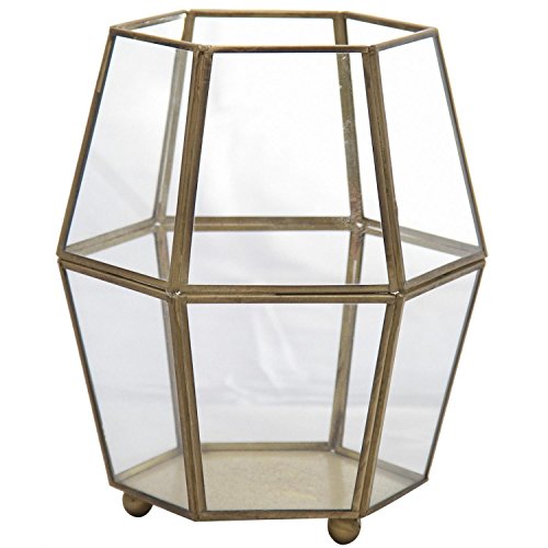 -. Feature : 8.75" Antique gold and glass hexagon candle lantern / From the Donny Osmond Home Collection / Recommended for indoor use