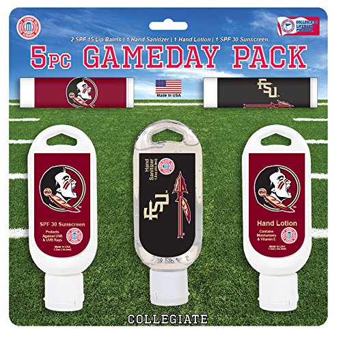 NCAA Tennessee Volunteers Game Day 5-Pack has everything a fan should need for personal care items. This collection includes 2 premium lip balms with exta-moisturizing ingredients, 1 premium hand sanitizer in 1.5 oz containers, 1 premium hand lotion in 1.5 oz container with extra-moisturizing ingredients, 1 SPF 30 sport sunscreen in 1.5 oz container. It's a great gift idea for men and women who are avid fans. Gift ideas for Mother's Day, Father's Day, birthday, Christmas stocking stuffers. Officially licensed NCAA products.