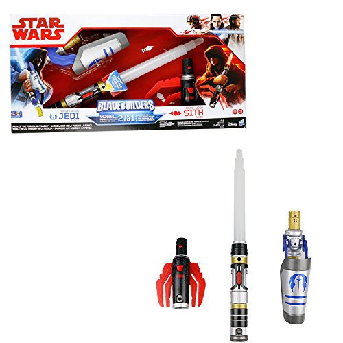 Enter the world of Star Wars and launch into action and adventure! Discover a galaxy of starships and vehicles, and get immersed in exciting stories of good versus evil against a backdrop of a universe populated by heroes, villains, droids, and space creatures with the Star Wars Bladebuilders Path of the Force Lightsaber! Kids can imagine battling on the side of the Jedi with included Jedi connector piece and blue lights, or wield the lightsaber on the side of the Sith with the Sith connector and red light effects! Easily switch connector pieces to fight with a blue Jedi blade or a red Sith blade. For more action, press button on Jedi or Sith connector piece to expand the hilt for customizable Bladebuilders fun! With the Path of the Force Lightsaber, kids can choose their own path and decide which side of the Force to fight on. Combine with other Lightsabers in the BladeBuilders system (each sold separately) and imagine the thrill of battle with a custom extendable lightsaber! Additional products each sold separately. Subject to availability. Star Wars products are produced by Hasbro under license from Lucasfilm Ltd. Hasbro and all related terms are trademarks of Hasbro.Feature