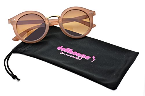 (dollhouse)/Accessories/Eyewear/DIRECT FROM USA/Dollhouse Women's Round Sunglasses, Milky Tan Frame with Metal Bridge, APG Brown Lens, 47mm