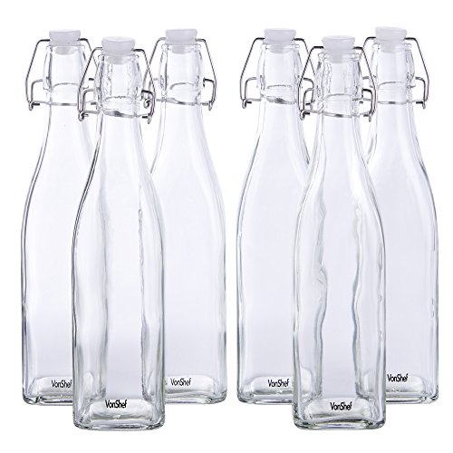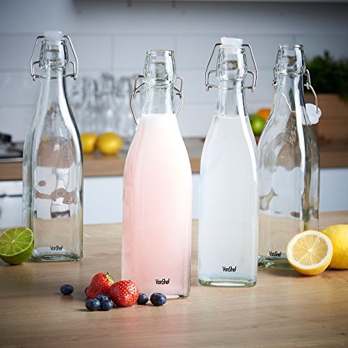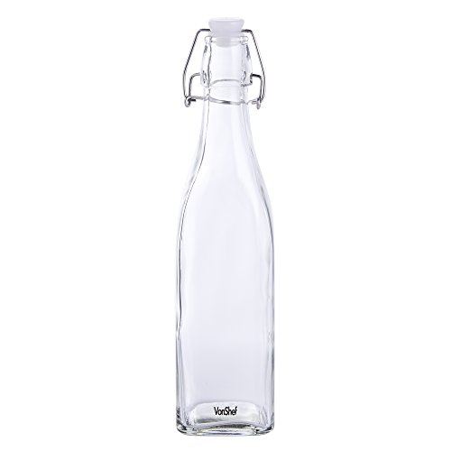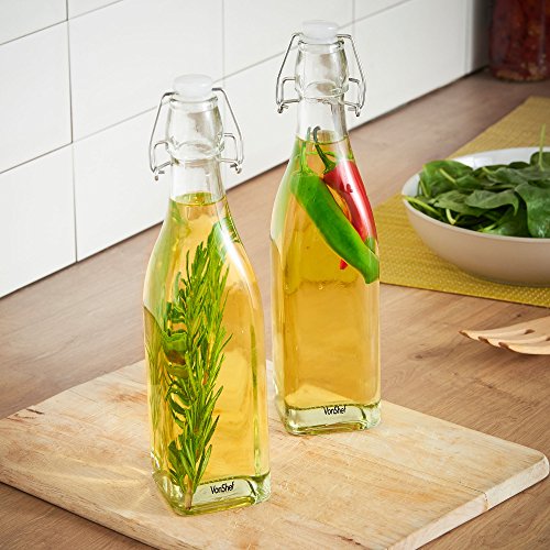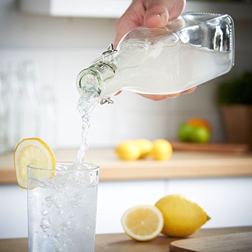 Turn home-made beers, liqueurs and condiments into a first-class product that wouldn't look out of place on the shelves of a smart delicatessen with these stylish VonShef vintage-effect swing top bottles. These sturdy 17 fl oz clip top bottles are designed to have the look and feel of popular fizzy drinks bottles from the last century, before plastic and glass bottles with resealable screw tops became the order of the day. VonShef clip top bottles are well made and suitable for storing and maturing a wide range of drinks and condiments. If you enjoy infusing oils and vinegar's with herbs and spices to your own recipe or like to experiment with different types of vinaigrette or salad dressings, these bottles are ideal for display and daily use. Home-made cordials and liqueurs also look their very best when decanted into a smart bottle. If you're a fan of hedgerow spirits such as sloe or damson gin or like nothing better than the tang of craft ginger beer, these elegant clip top bottles are the perfect way to showcase your skills! The large 500ml capacity is an excellent size for oils, vinegar's and cordials but there's also a 250ml version if you're looking for a more modest capacity. The silicone seal makes the bottle airtight and is BPA-free. Bottle Height: 10.8" approx. 0