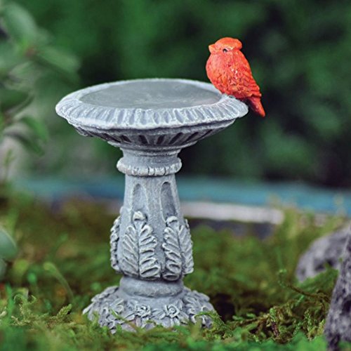 Fiddlehead Fairy Village - Mini Bird Bath with Cardinal - includes Bonus Novelty Fairies Bill and I Believe in Fairies 3" Decal
