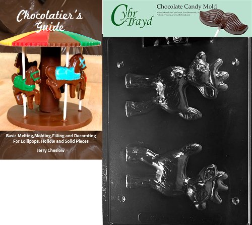 Cybrtrayd '3D Reindeer' Christmas Chocolate Candy Mold with Chocolatier's Guide