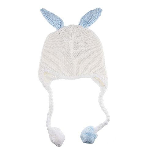 Adorable bunny rabbit hat in two color choices, white with orchid pink ears or white with eggshell blue ears