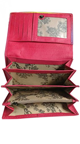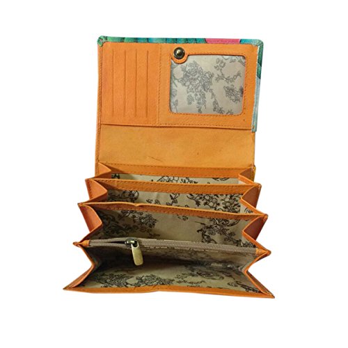 / VINTAGE STYLE : makes this designer money purse elegant and the unique design highlights feminine elegance.This wallet has the timeless look that is always in style. / SPACIOUS INTERIOR : This ladies clutch features 4 main inner compartments and one zipper pocket,10 credit card slots,one clear ID window, a checkbook slot , 1 full length bill pocket and Rear full length wall pocket. / FUNCTIONAL FOR YOUR BUSY LIFE : Convenient quick access ID window lets you easily show your ID at the ready.The slim profile doesn't bulk up and easily slips in and out of your pocket or purse