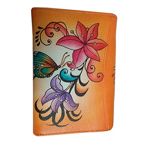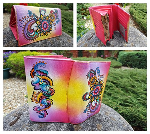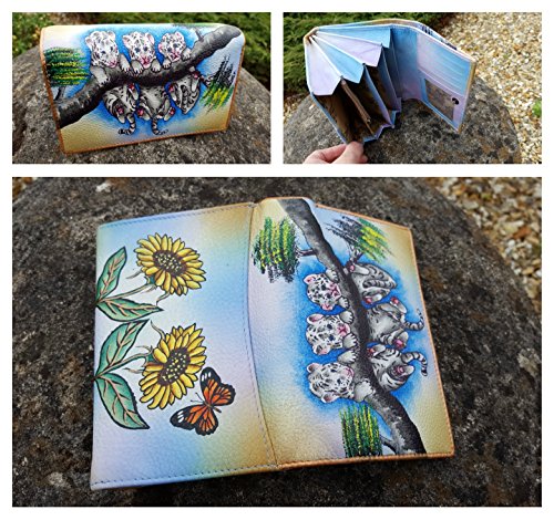 -. Title : Genuine Leather Wallet Money Card Organizer Large Womens Coin Purse Hand Painted SALE