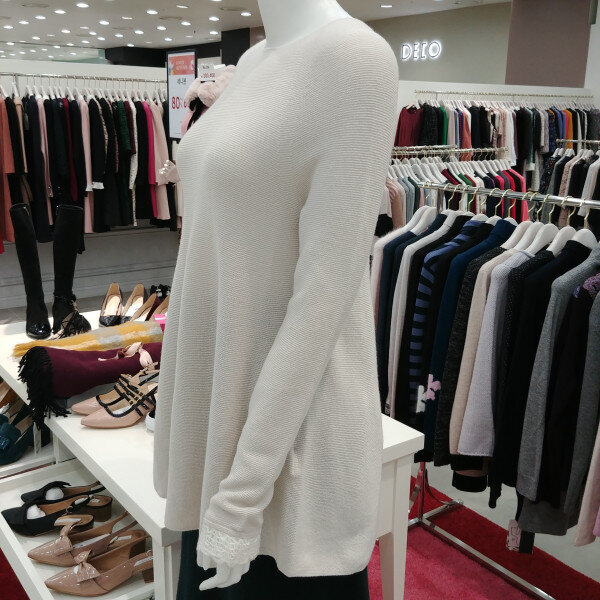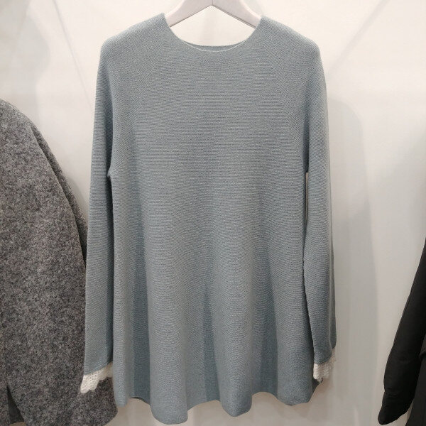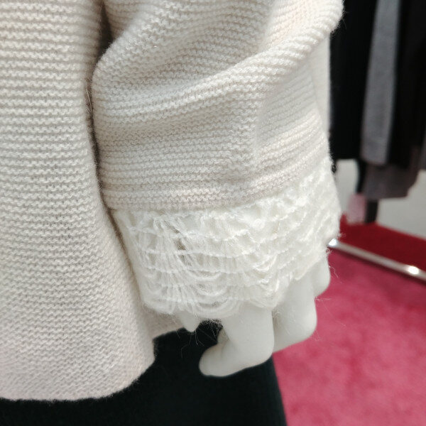 캐시미어 100프로 원사로 A라인 실루엣과 소매끝의 레이스 패치가 여성스러운 니트입니당 ♥♥♥