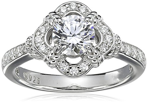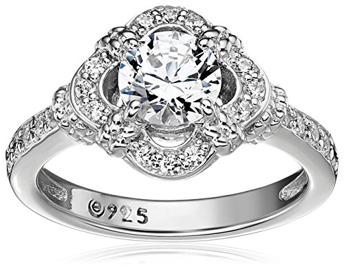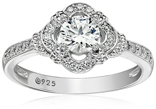 Platinum-Plated Sterling Silver Swarovski Zirconia Antique Frame Halo Ring (1 cttw), Size 7
