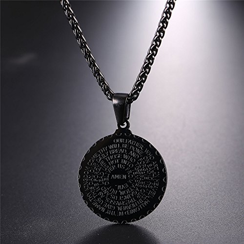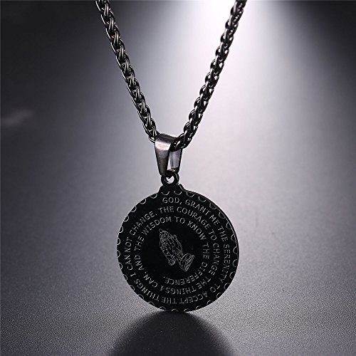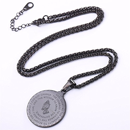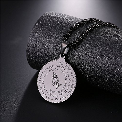 Coin charm necklace, with prayer words and praying hands. Christian symbols.