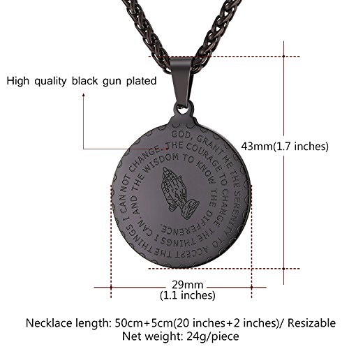 Dimension: 1.7" x 1.1" (pendant),Chain: 20" + 2 inches chain extender. 3MM Wide twisted wheat chain.