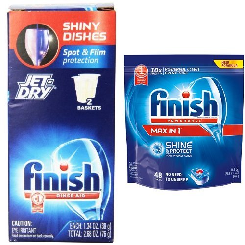 FINISH JET DRY RINSE AGENT SOLID, 2.68 OUNCE & FINISH POWERBALL TABS AUTOMATIC DISHWASHER DETERGENT, SHINE AND PROTECT MAX IN 1, 48 COUNT