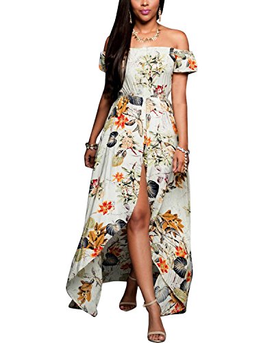 -. Title : BIUBIU Women's Off Shoulder Floral Rayon Party Split Maxi Romper Dress S-3XL