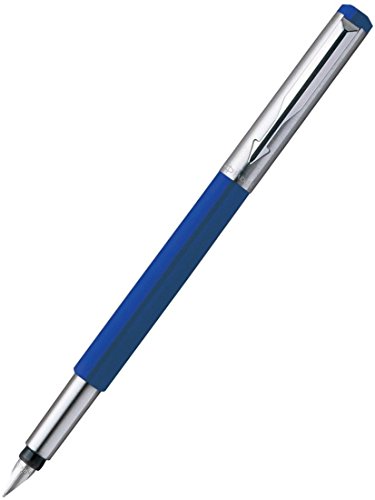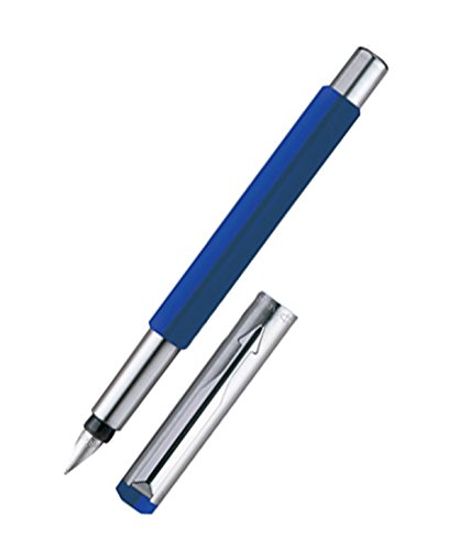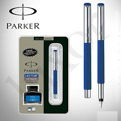 -. Feature : Moulded plastic barrel and cap with shiny chromed stainless steel clip / Stainless steel / Fine nib Fountain pen / Fountain pen uses the Cartridge or converter nib / Parker Vector Mettalix Fountain Pen (Blue) with Quink Ink Bottle