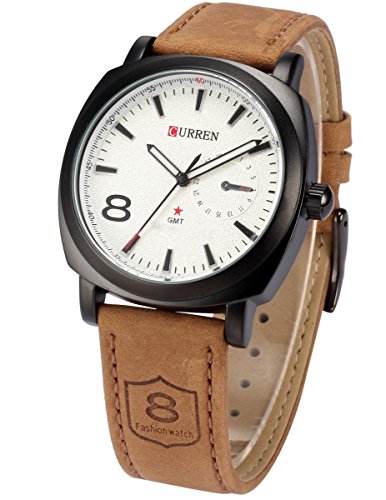 -. Title : [エーエムピーエム24]AMPM24 ファッション メンズ ブラウン レザー アナログ アーミー ミリタリー クォーツ スポーツ 腕時計CUR046