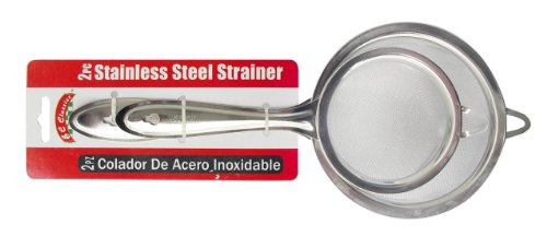 -. Feature : Small: 8"x 3" Large: 10.6"x 4.5" / Non magnetic stainless steel / Fine single mesh strainer / Resting ring designed to hook over pots or bowl. Perfect for sifting and straining wet or dry ingredients / Hole in handle provide hanging storage solutions. Dishwasher safe