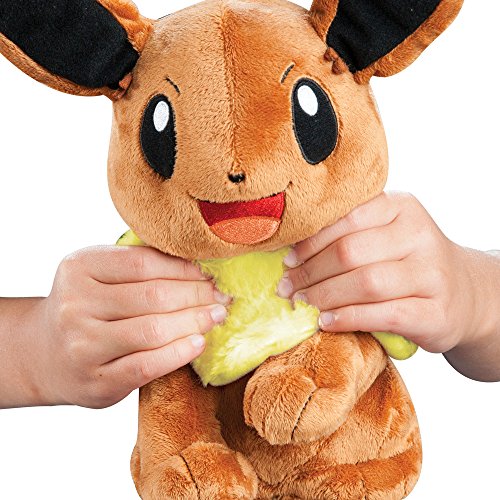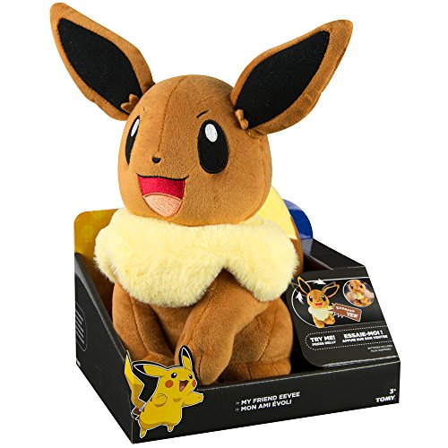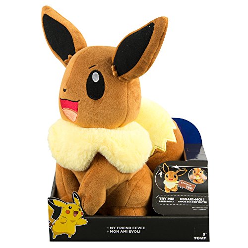 -. Author : Tomy -. Binding : Toy -. Brand : TOMY -. EAN : 0053941193799 -. Feature : This soft and cuddly Eevee plush is approximately 10" tall / Press Eevee's belly to make the ears move and to hear one of Eevee's signature phrases / Features 12 sounds and phrases / Suitable for ages 3 years and up -. IsAdultProduct : 0 -. Label : Tomy International (RC2) -. Manufacturer : Tomy International (RC2) -. Model : T19379D -. MPN : T19379D -. NumberOfItems : 1 -. PackageQuantity : 1 -. PartNumber : T19379D -. ProductGroup : Toy -. ProductTypeName : TOYS_AND_GAMES -. Publisher : Tomy International (RC2) -. ReleaseDate : 2018-03-13 -. Studio : Tomy International (RC2) -. Title : TOMY Pokémon My Friend Eevee Feature Plush -. UPC : 053941193799 -. Warranty : 90 day warranty against manufacturer defects