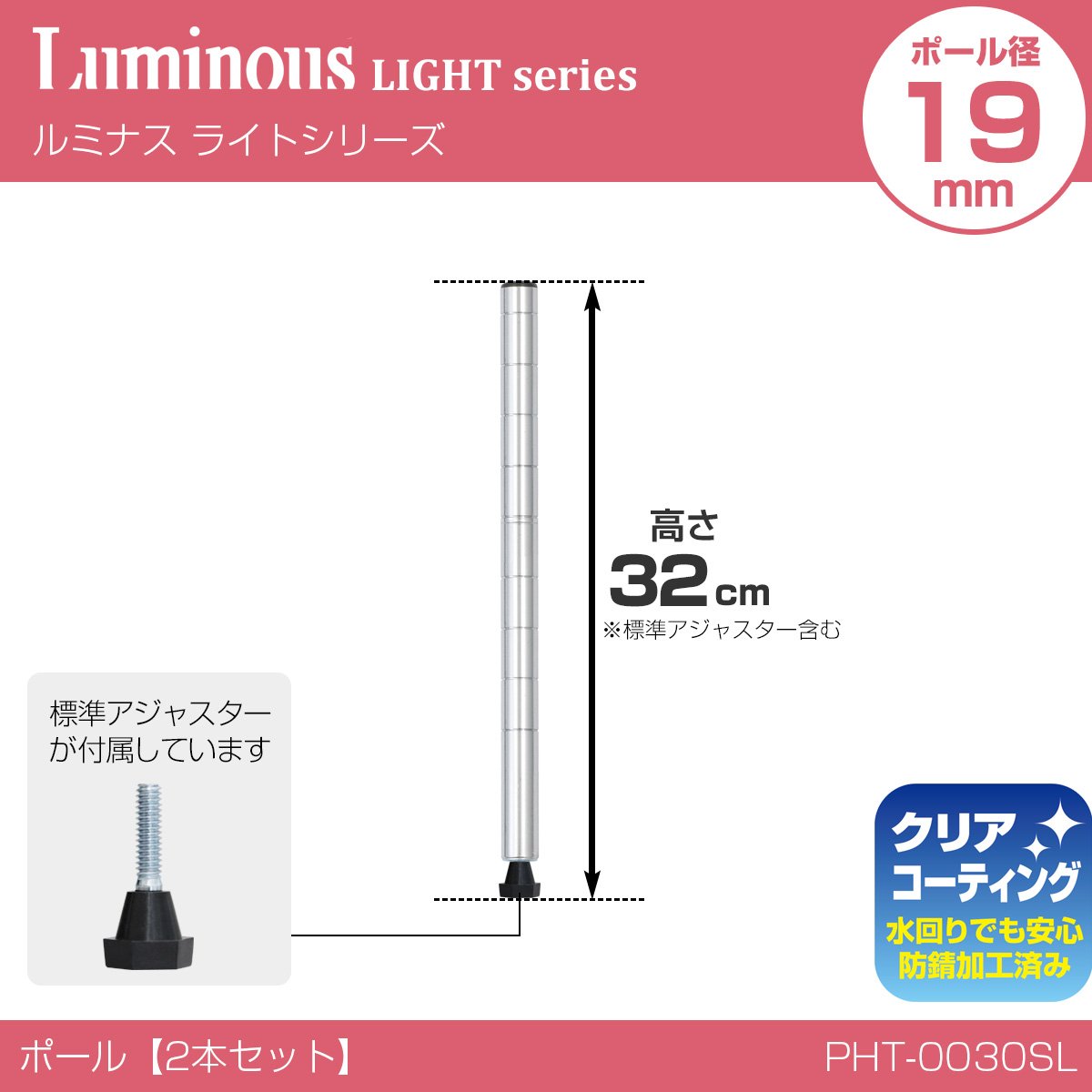 Luminous pole diameter 19mm for parts Pole (strut) Paul 32cm (2 pcs set) height 32cm PHT-0030SL