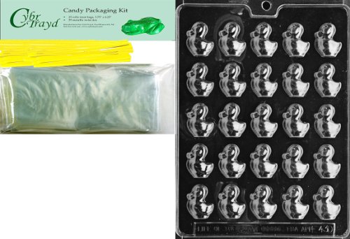 Cybrtrayd 'Bite Size Ducks' Easter Chocolate Candy Mold with Packaging Bundle, Includes 25 Cello Bags, 25 Yellow Twist Ties and Chocolate Molding Instructions