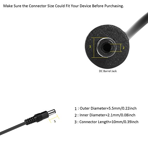 - Outer 5.5mm x Inner 2.1mm DC jack; Center Positive Polarity; Totally 95cm/3.1Ft cable length