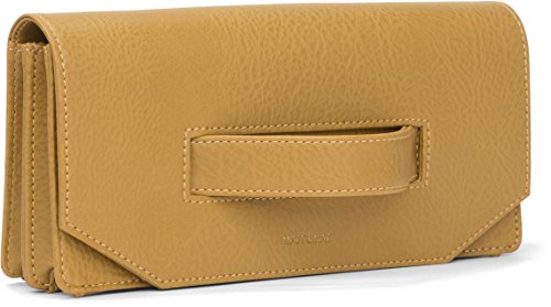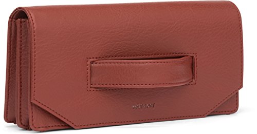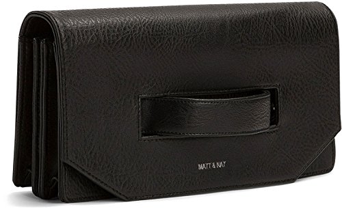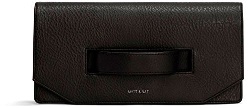 Clutch featuring flap closure with cutout for handle. Three interior compartments, center with zipper closure. Accordion sides. INTERIOR: 6 card slots, logo-embossed Dwell tag. 100% recycled nylon liningFeature