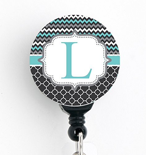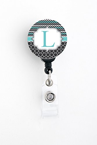 L Initial Chevron Trellis - Retractable Badge Reel With Swivel Clip and Extra-Long 34 inch cord - Badge Holder