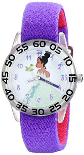 -. Binding : Watch -. Brand : Disney -. Color : Purple -. Department : girls -. EAN : 0843231081963 -. Feature : Round Time Teacher Plastic Watch with Disney's Tiana character on dial. / Meets or exceeds all US Govt requirements and regulations for Children's watches. / Recommended for Ages 3-7 years old. Includes a Time Teacher Punch Out clock for Parents to Teach their Children. / Accurate Japanese Quartz movement, scratch resistant mineral crystal, hook and loop Nylon strap / Water Resistant to 99 feet: withstands rain and splashes of water, but not showering or submersion. / 1 Year Limited Manufacturers Warranty -. Label : Disney-Roll up -. Manufacturer : Disney-Roll up -. Model : W001951 -. MPN : W001951 -. PackageQuantity : 1 -. PartNumber : W001951 -. ProductGroup : Watch -. ProductTypeName : WATCH -. Publisher : Disney-Roll up -. Studio : Disney-Roll up -. Title : Disney Kids' W001951 Tiana Analog Display Analog Quartz Purple Watch -. UPC : 843231081963