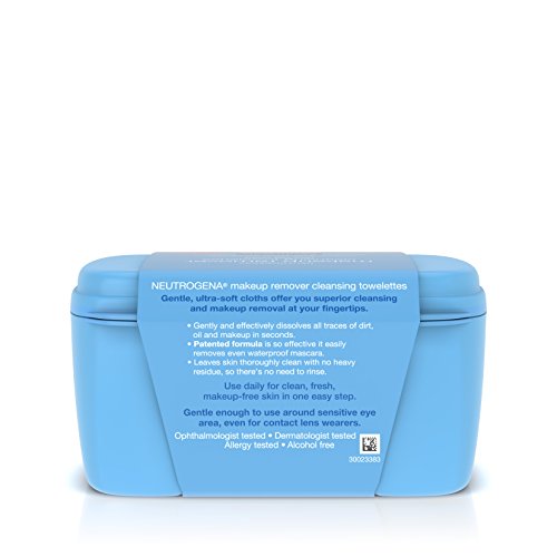 Remove makeup in one easy step with Neutrogena Makeup Remover Cleansing Towelettes. Formulated to be gentle and safe around the sensitive eye area and for contact lens wearers, these soft and gentle pre-moistened towelettes effectively dissolve all traces of dirt, oil and makeup--even waterproof mascara--for clean, fresh skin every day. The towelettes leave skin thoroughly clean and without heavy residue, so there's no need to rinse. This convenient, re-closeable pack includes 25 cleansing sheets.Feature