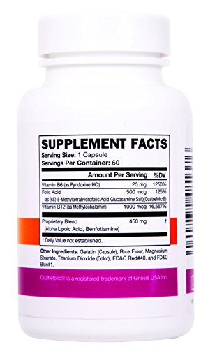 Folate (Quatrefolic (6S)-5 Methyltetrahydrofolic Acid) is a unique form of the folate, another B-Vitamin that is essential for the proper functioning of peripheral nerves.