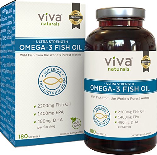 Viva Naturals Omega 3 Fish Oil Supplement, 180 Softgels, The Highest Concentration of Burpless Omega 3 Capsules, 2,200mg Fish Oil/serving