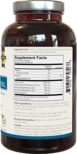 ENHANCED ABSORPTION - Unlike molecularly distilled fish oil, our ultra-strength fish oil is extracted using a proprietary supercritical extraction method that concentrates the value of omega-3’s for enhanced absorption and the greatest bioavailability.