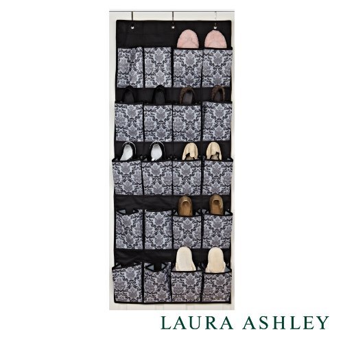 -. Feature : 20-Pocket Shoe Organizer / measures 22"x53.5" when fully opened / Conveniently hooks onto closet door / Laura Ashley style and quality / Holds 20 pairs of shoes