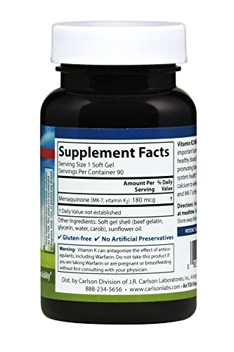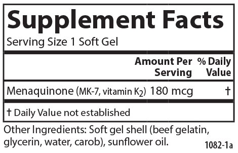Without vitamin K2, calcium can't adequately be processed in our body to help maintain strong, healthy bones. Vitamin K2 activates certain proteins, including osteocalcin and Matrix GLA Protein (MGP), which play a role in binding calcium to the bone matrix. Without an adequate amount of vitamin K2, a significant amount of osteocalcin will remain inactive and unable to bind to calcium. Vitamin K2 also supports cardiovascular system health by promoting healthy blood clotting and directing calcium out of the bloodstream and arteries and into the bones. Build better bones and support optimal wellness with Carlson Vitamin K2 as MK-7.Feature