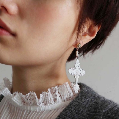 앤틱한 느낌을 잘 살린 십자가 귀걸이이예요.
