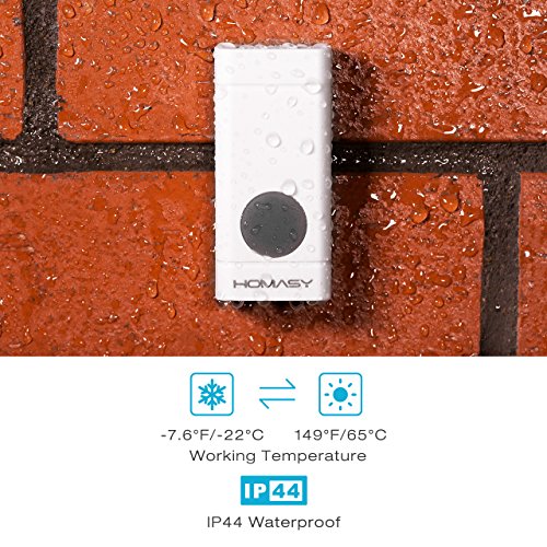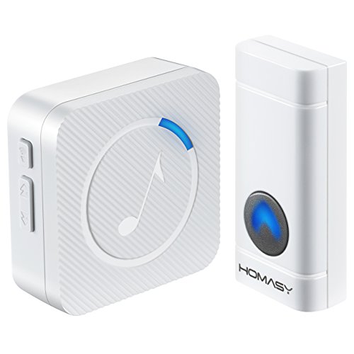 Homasy Wireless Doorbell Kit, Operating at 600 Feet with 52 Chimes, 4 Level Volume, 1 Receiver & 1 Weatherproof Push Button with Sound and LED Flash (White)