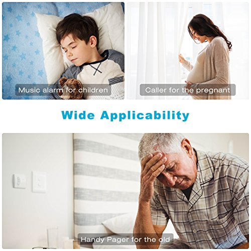 - Versatile Design - You can expand each receiver with up to 50 transmitters. Code learning function makes it easy to customize your doorbell with multiple transmitters and receivers, It can also be used as music alarm for your child and handy pager for the old in terms of timely care.