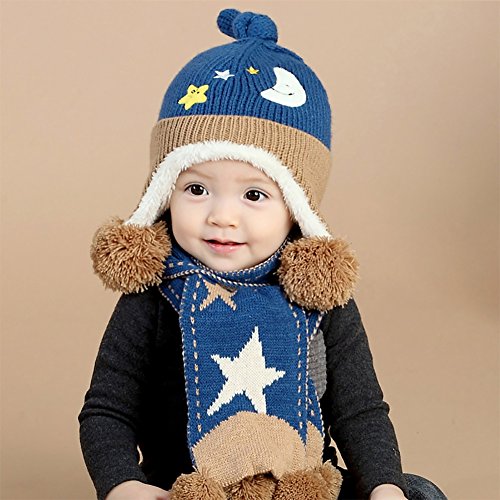 Binding : Apparel Product Description Flammi Unisex Baby Toddler Winter Hat Scarf Set Hat: Top knot design, you can undo it. Double-layer fabric, thick knit exterior plus warm plush lining. Earflap with pom pom warm ears. Nice star and moon pattern. Scarf: Double-layer knit fabric. Star jacquard. Two ends with total 4 cute pom pom.