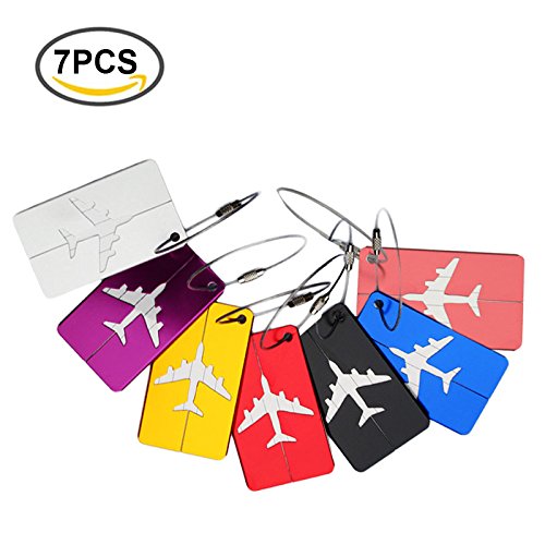 KINGLAKE 7Pcs Travel Luggage Tags Cute Luggage Label Suitcase Luggage Bag Tags Card Holder Aluminum Alloy Airline Baggage Labels Travel ID Bag Tag