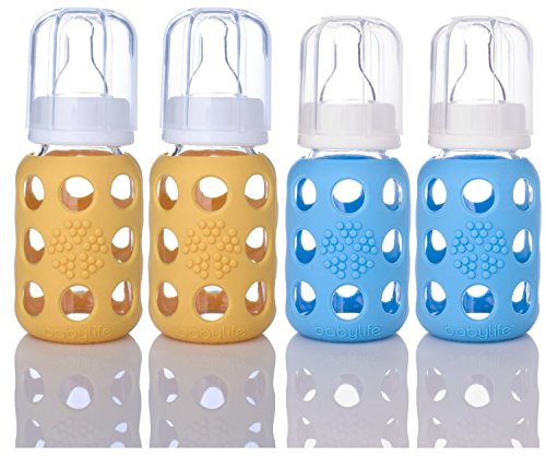 -. Title : Lifefactory Glass Baby Bottles 4 Pack (4 oz. in Sky Blue / Yellow)