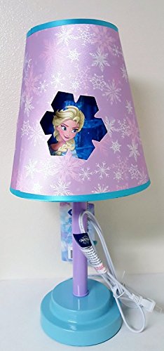 -. Binding : Toy -. Brand : Disney -. Color : blue and purple -. EAN : 0784857647549 -. Feature : Perfect for any Frozen fan! / Adds to the decor of any room / Perfect for use on accent or end tables / 40 Watt bulb required - not included / Dimensions: 18" H x 9" W x 9" L -. IsAutographed : 0 -. Label : Idea Nuova - LA -. Manufacturer : Idea Nuova - LA -. Model : TK319147 -. MPN : TK319147 -. PackageQuantity : 1 -. PartNumber : TK319147 -. ProductGroup : Toy -. ProductTypeName : TOYS_AND_GAMES -. Publisher : Idea Nuova - LA -. Studio : Idea Nuova - LA -. Title : Disney Frozen Table Lamp with Die Cut Shade, Pink -. UPC : 784857647549 -. Warranty : No Warranty