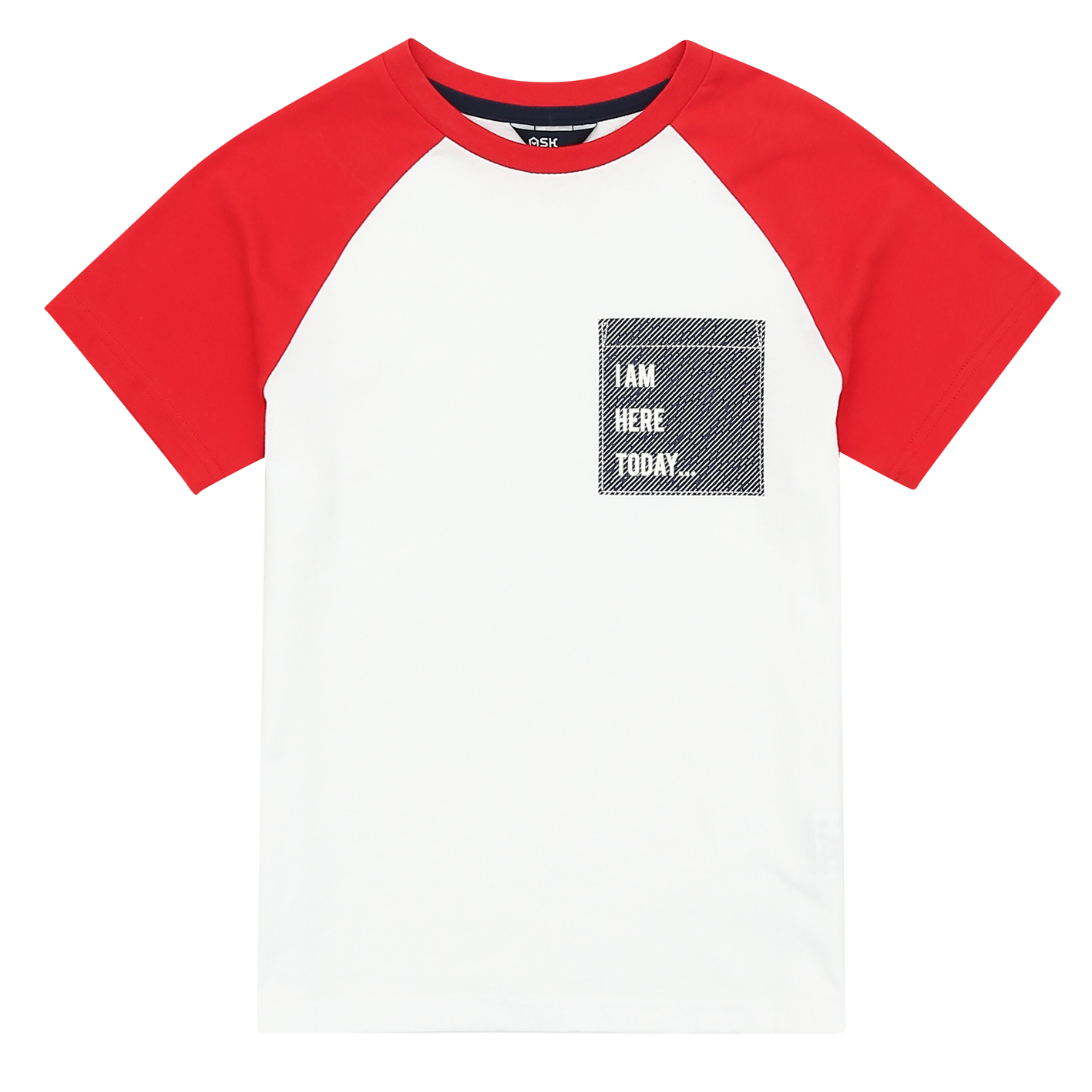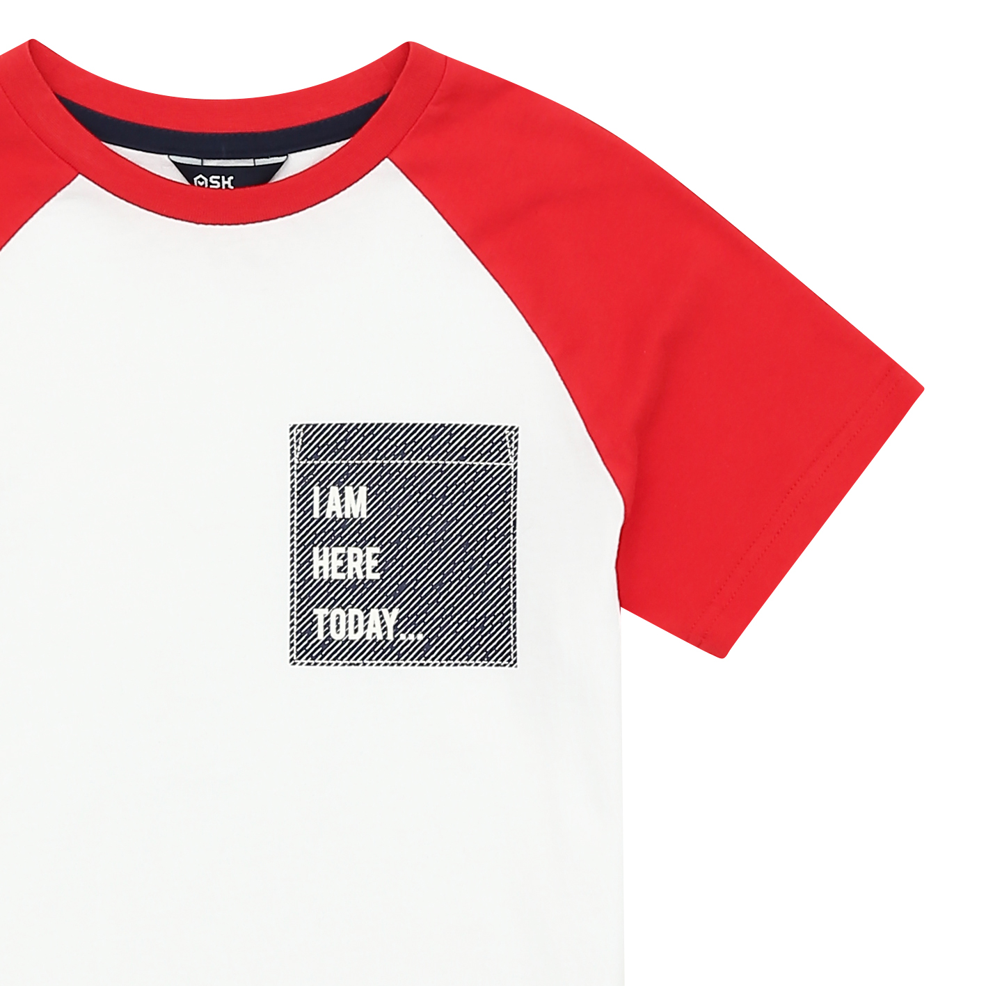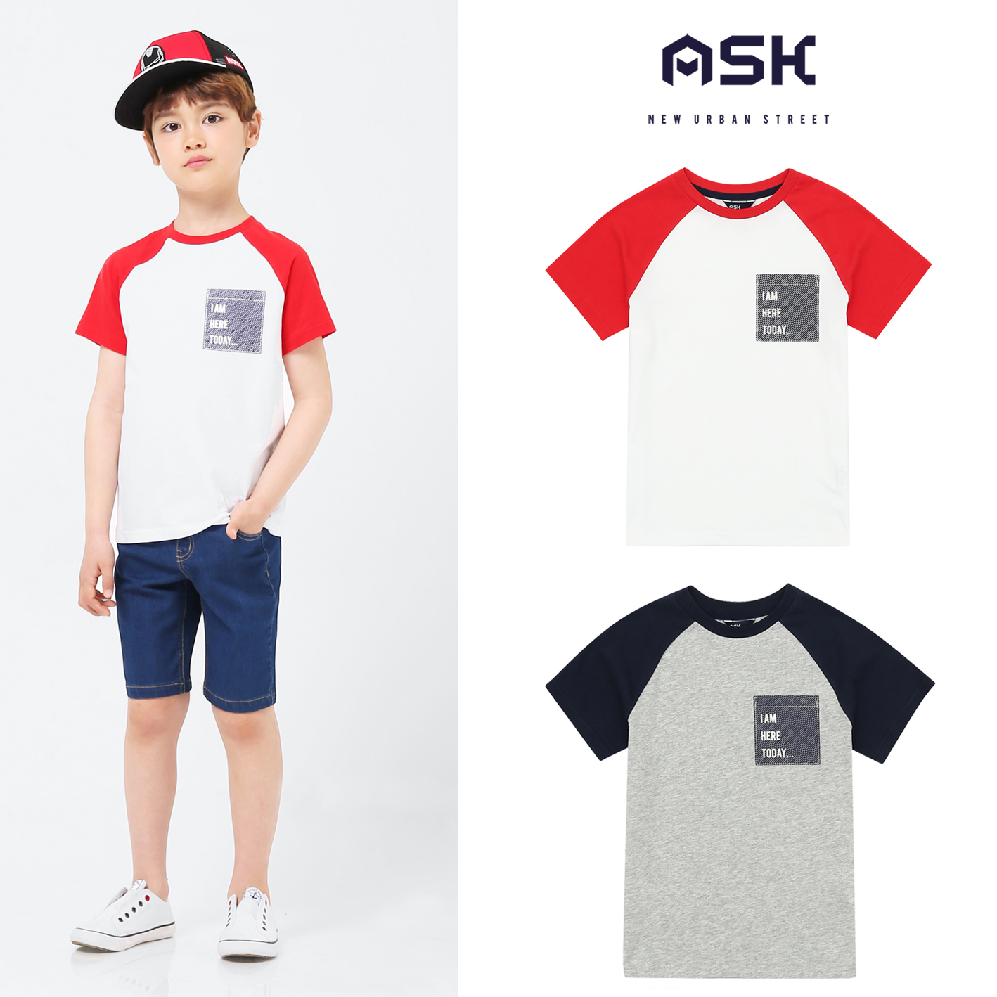 30수 싱글 소재의 기본 라글란 티셔츠. 몸판과 소매 배색을 주고, 가슴에 주머니 나염으로 포인트를 주어 심플하면서도 무난한 아이템.