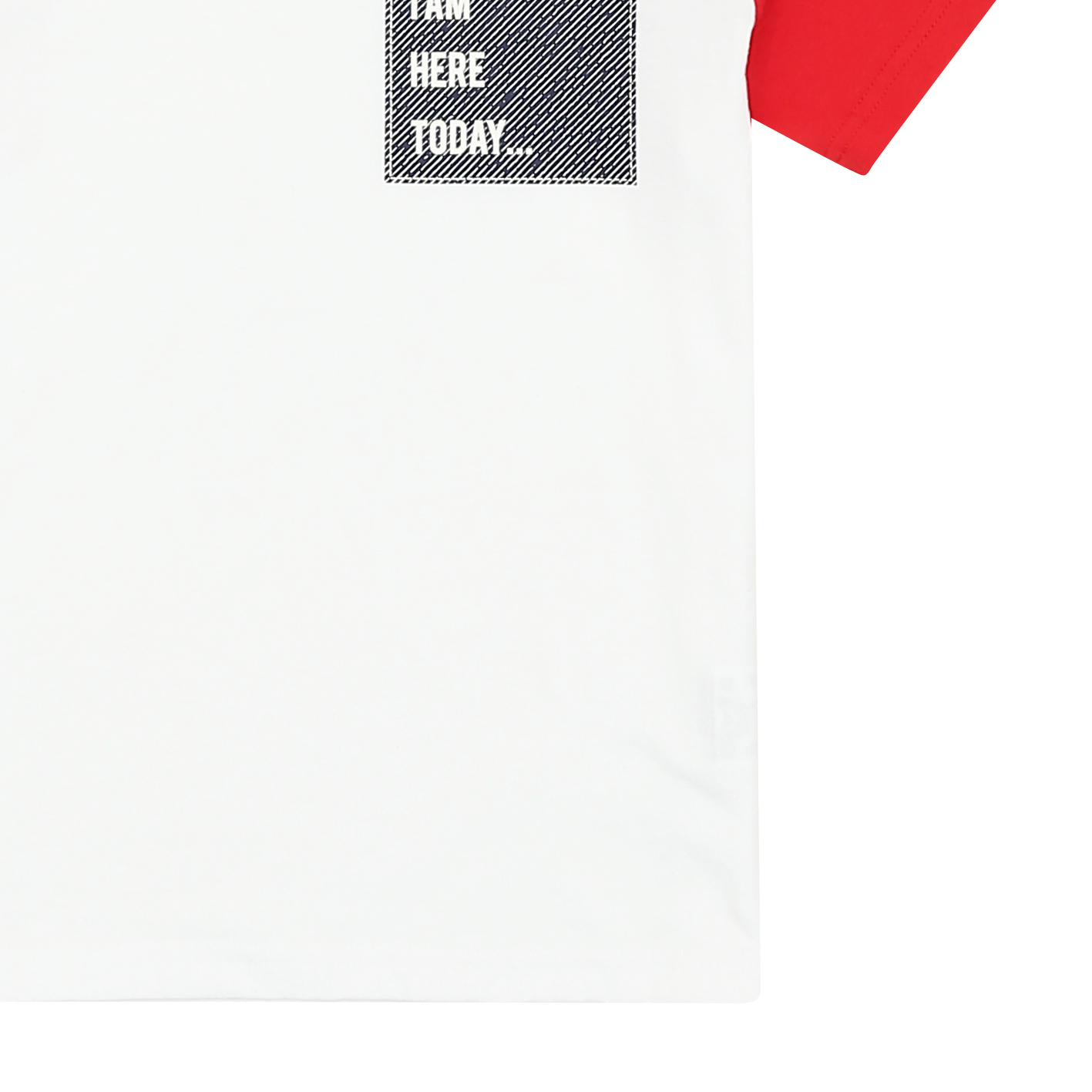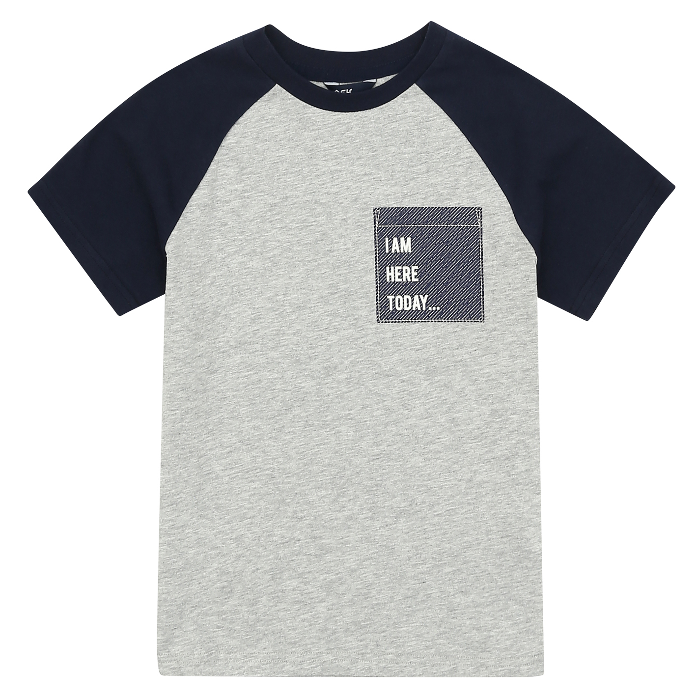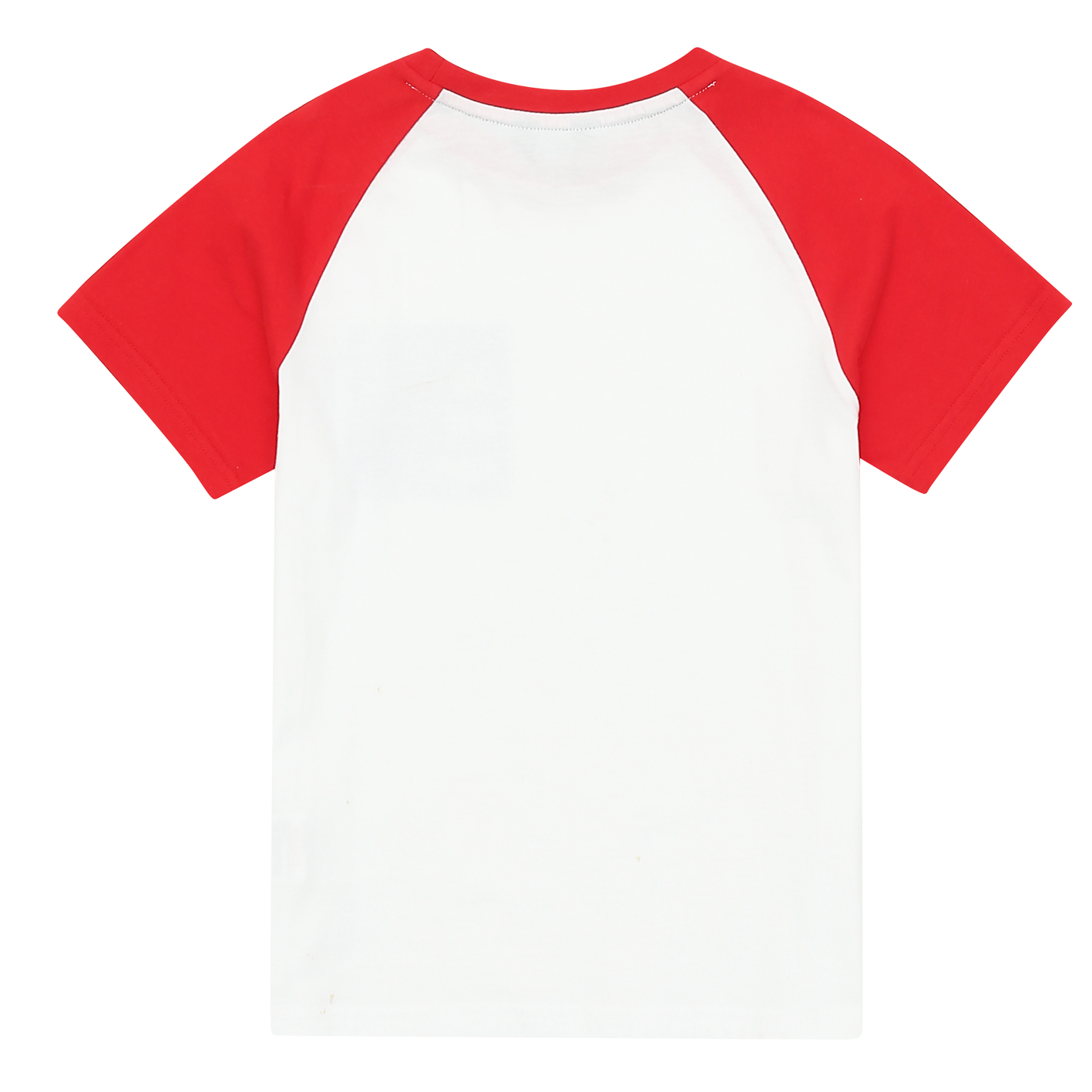 30수 싱글 소재의 기본 라글란 티셔츠. 몸판과 소매 배색을 주고, 가슴에 주머니 나염으로 포인트를 주어 심플하면서도 무난한 아이템.