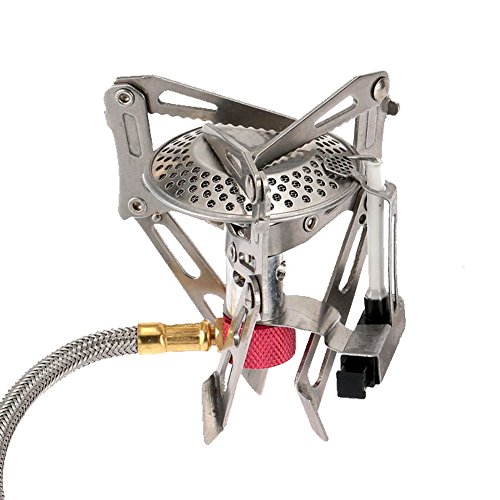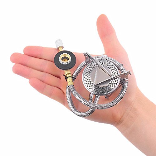 The arms on top and the legs on the bottom of the camping stove can be folded in. The stove fits in the palm of your hand, easily compact and lightweight, also come with a pouch, only weighs 146g / 5.1oz, easy to carry.
