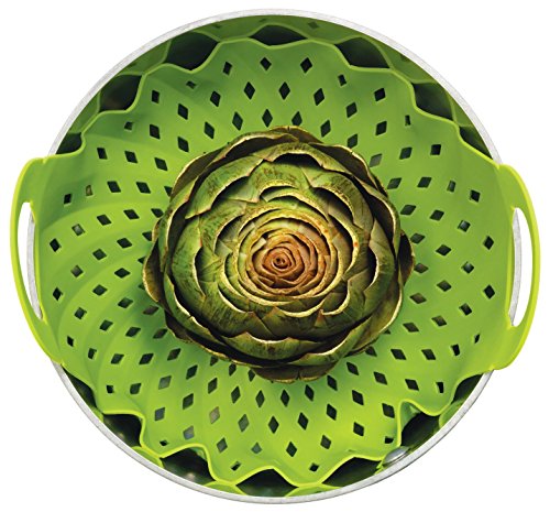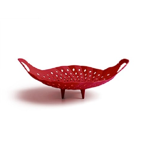 Steam fresh vegetables for healthier meals using the Chef'n Veggisteam vegetable steamer. Made from silicone, this steamer is heat resistant and microwave safe for a variety of uses. The flexible, pleated design allows the steamer to fit in many sized pans up to 10-inches. Its long handles make it the steamer easy to remove from hot water, while the wide base allows you to steam several servings of veggies at once. The handle notches hook together to keep food safe and snug in the steamer. Top rack dishwasher safe for easy cleanup. Chef'n approaches housewares with a creative mind and sense of humor. Innovations are its signature element, an approach started by founder and self-proclaimed Famous Inventor, David Holcomb, with his Garlic Machine in 1982.Feature