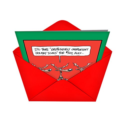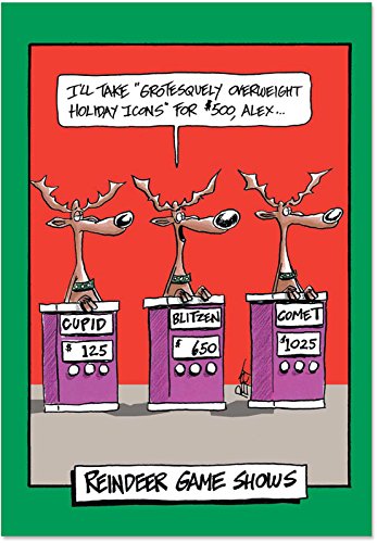 B1193 Box Set of 12 Reindeer Game show Inappropriate Christmas Cards with Envelopes