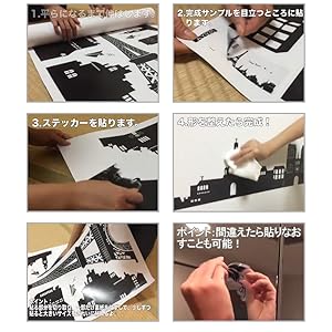 • ポイント:貼る部分を切り取り、一部だけ裏紙をはすして、少しずつ貼ると大きいサイスをきれいに貼れる!