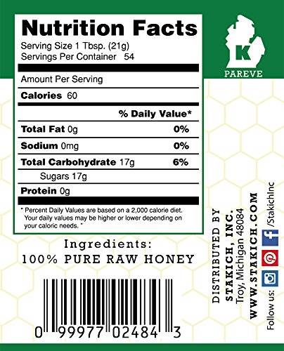 Stakich BUCKWHEAT Antioxidant RAW HONEY 40-OZ, Pure, Unprocessed, Unheated, KOSHER