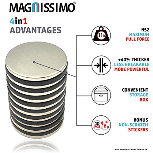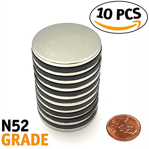 Magnissimo! Neodymium Magnets N52 [10 pcs] Earth Magnets Disc 1.26"D x 0.1"H Perfect for DIY, Arts & Crafts, Misti, Home, School, Science and Office Projects. Extra Strong Magnets