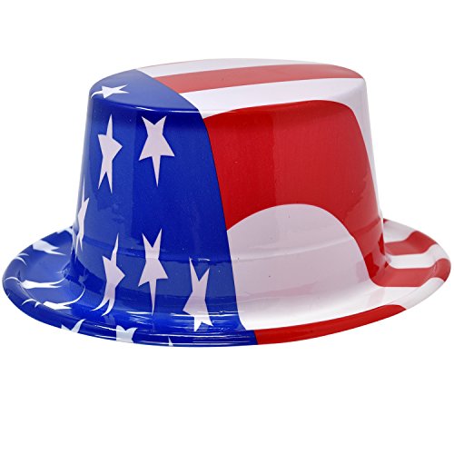 -. Feature : P.R.Inted with the stars and stripes, this plastic derby hat makes a patriotic statement during 4th of July, Memorial Day or whenever you need to celebrate Old Glory / Fun Independence party favors for the whole gang, wear your American P.R.Ide in a picture-perfect way!This plastic hat also makes a great prop for photo booth fun! / These top hats are a great way to get into the Independence Day spirit! / These plastic top hats will be a big hit at a Labor Day picnic, fireworks show or other star-spangled event! Ideal for an Uncle Sam costume / Measures